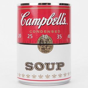 In 1900, Campbell’s Soup, which had been founded in 1869 by Joseph A. Campbell, adopted the iconic red and white label with the metallic gold seal and the words, Paris International Exposition. The seal from the 1900 Paris Exhibition while the red and white represents the colors for Cornell University, the alma-ata of Campbell’s executive, Herberton Williams.