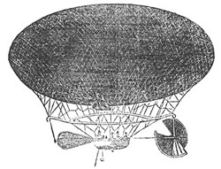 Like Sir George Cayley's balloon, his own was an ellipsoid. Its length was 13 feet 6 inches‐height, 6 feet 8 inches. It contained about 320 cubic feet of gas, which, if pure hydrogen, would support 21 pounds upon its first inflation, before the gas has time to deteriorate or escape. The weight of the whole machine and apparatus was 17 pounds‐leaving about 4 pounds to spare. Beneath the centre of the balloon, was a frame of light wood, about 9 feet long, and rigged on to the balloon itself with a net‐work in the customary manner. From this framework was suspended a wicker basket or car.